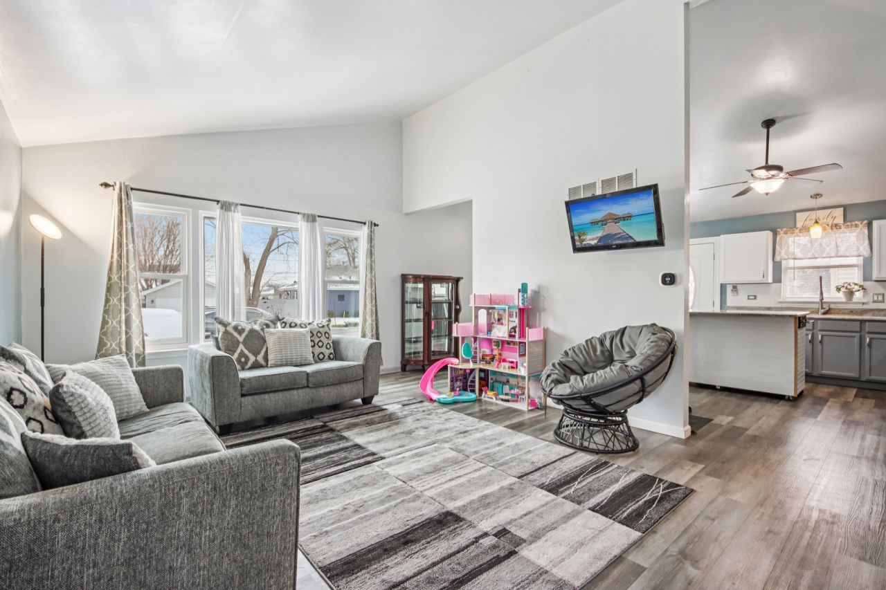 Welcome to this beautifully updated Lakemoor home, just blocks from scenic Lily Lake. This move-in-ready tri-level offers 4 bedrooms, 2.1 baths, and a flexible floor plan designed for today's lifestyle. The main level features an open living room and kitchen with soaring cathedral ceilings and abundant natural light through newer Andersen windows and doors. The updated kitchen is a true standout with granite countertops, a custom movable center island, and stylish Samsung smart appliances. They are perfect for everyday living and entertaining. Three bedrooms are located on the upper level, including a spacious primary suite with a private full bath and generous closet space. Two additional bedrooms share a modern full bath. The finished English lower level provides exceptional additional living space, featuring a large family room ideal for relaxing or entertaining, plus a versatile office, den, or bedroom. A laundry room, half bath, and ample storage, plus a crawl space, complete this level. Step outside to a fully fenced backyard with a brick paver patio, perfect for summer gatherings, pets, or peaceful evenings at home. Enjoy a prime Lakemoor location close to Lily Lake, parks, festivals, shopping, dining, and everyday conveniences. This home offers the perfect blend of updates, space, and location. This is an excellent opportunity to enjoy comfort, style, and the best of Lakemoor living. Also included is the coffee bar. Sold AS-IS.