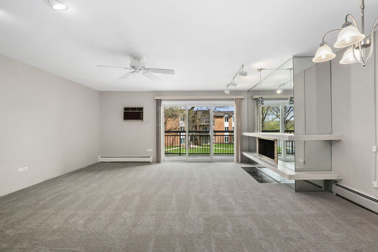 NEAR DOWNTOWN DOWNERS GROVE, this resort-like community boasts tranquil paths, beautiful landscaping, a community pool, elevator buildings with security doors, ample guest parking, a dedicated garage, & nearby parks! This two-bedroom, two-full-bathroom property features FRESH PAINT throughout, BRAND NEW CARPET, a refinished kitchen, upgraded lighting, & new fixtures! As you enter this turnkey home, note the pride in ownership and open-concept feel. You can host holidays with ease from the open concept living/dining room which provides sliding doors to your private balcony. Take your morning coffee from the balcony and enjoy peaceful courtyard views. Looking for a home with personality? Curl up with a good book in front of the cozy living room fireplace-a midcentury-modern brick feature that adds a truly luxurious feel to the condo. The newly painted kitchen features an airy Mediterranean feel, bonus dining space, generous cabinet storage, & ample counter space. The primary suite offers ample closet space and an oversized attached bathroom with a convenient shower. Guests will appreciate the full secondary bedroom and full bathroom, which boasts a relaxing tub, spacious vanity, & beautiful tile work. Residents enjoy resort-style amenities, including two outdoor pools, and a clubhouse. Assessment includes heat, water, gas, exterior maintenance, and snow removal. Additional features include a storage locker, bike room, spacious on-site laundry room, deeded garage space, & more! Prime location near Doerhoefer Park and just minutes from downtown Downers Grove, shopping, dining, and Metra station. Easy access to I-88 and I-355. Easy elevator building and low maintenance living near vibrant downtown Downers Grove. This is the one you've been waiting for!