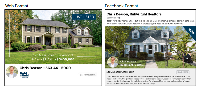 Advertisements for your property can be strategically placed online, specifically on Facebook, Instagram and other major websites. These beautiful, eye-catching ads are placed to target potential buyers to your property.
